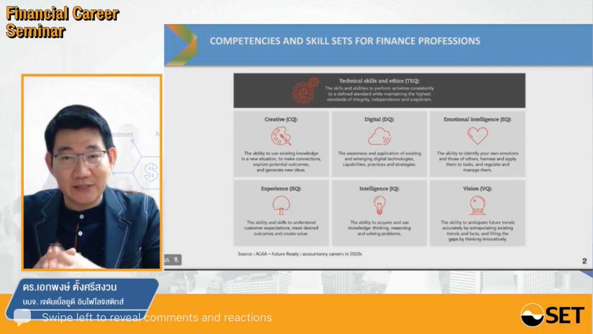 On 24 April, Dr. Eakapong Tungsrisanguan (CFO) was invited from SET to deliver an online lecture on the topic “Financial Career Seminars” to more than 23,000 students and people interested.